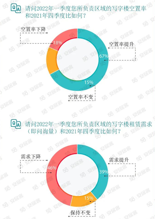 據(jù)58同城、安居客數(shù)據(jù)統(tǒng)計,寫字樓簽約客戶主要來自于金融業(yè)、專業(yè)服務(wù)業(yè)、外貿(mào)、生物醫(yī)藥、教育、TMT、制造業(yè)和房地產(chǎn)等行業(yè)。對于二季度寫字樓市場,有15%的經(jīng)紀(jì)人認(rèn)為空置率會進(jìn)一步下降;還有47%的經(jīng)紀(jì)人認(rèn)為二季度所負(fù)責(zé)區(qū)域的寫字樓租賃需求相比一季度需求會提升。