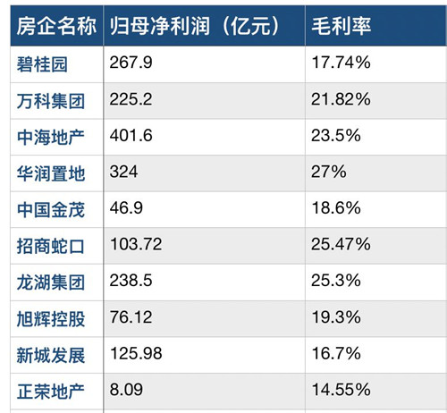 國金證券研報統(tǒng)計數(shù)據(jù)顯示,從3月以來房企發(fā)布的2021年業(yè)績公告看,平均毛利率為18.74%,平均凈利潤率為8.21%。