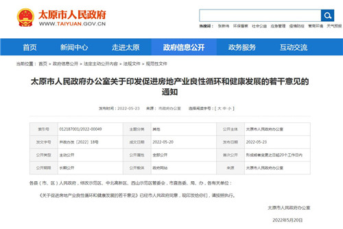 5月23日,太原市政府新聞辦舉行了太原市促進(jìn)房地產(chǎn)業(yè)良性循環(huán)和健康發(fā)展新聞發(fā)布會(huì)。記者從會(huì)上獲悉,為深入貫徹黨中央、國(guó)務(wù)院和省委、省政府關(guān)于促進(jìn)房地產(chǎn)業(yè)良性循環(huán)和健康發(fā)展的各項(xiàng)決策部署,堅(jiān)持“房子是用來(lái)住的、不是用來(lái)炒的”定位,落實(shí)城市主體責(zé)任制,著力“穩(wěn)地價(jià)、穩(wěn)房?jī)r(jià)、穩(wěn)預(yù)期”,促進(jìn)房地產(chǎn)市場(chǎng)健康發(fā)展,我市出臺(tái)《關(guān)于促進(jìn)房地產(chǎn)業(yè)良性循環(huán)和健康發(fā)展的若干意見(jiàn)》(下稱(chēng)《意見(jiàn)》)!兑庖(jiàn)》分六大部分、三十六條,從需求端、供應(yīng)端、金融端合力穩(wěn)定房地產(chǎn)市場(chǎng)預(yù)期。