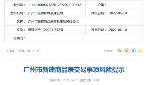 房訊網(wǎng)訊 6月10日,廣州市住建局在官網(wǎng)發(fā)布了《廣州市新建商品房交易事項風(fēng)險提示》,將購房過程中需重點關(guān)注的十大風(fēng)險事項進行提示。