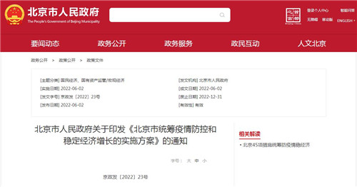 北京市統(tǒng)籌疫情防控和穩(wěn)定經(jīng)濟增長的實施方案