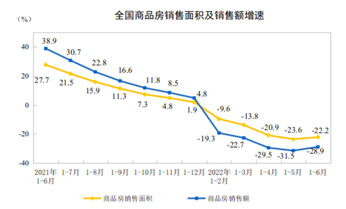 房訊網(wǎng)訊 7月15日,國(guó)家統(tǒng)計(jì)局發(fā)布1—6月份房地產(chǎn)市場(chǎng)運(yùn)行情況。數(shù)據(jù)顯示,上半年全國(guó)商品房銷售面積68923萬(wàn)平方米,同比下降22.2%;其中,住宅銷售面積下降26.6%。商品房銷售額66072億元,下降28.9%;其中,住宅銷售額下降31.8%。