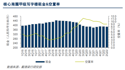 二季度,在無新增供應(yīng)的情況下,北京整體市場空置率環(huán)比下降0.4個百分點,同比下降3.6個百分點至13.9%,五大核心商圈空置率環(huán)比與上季度持平,同比下降1.0個百分點至9.0%。
