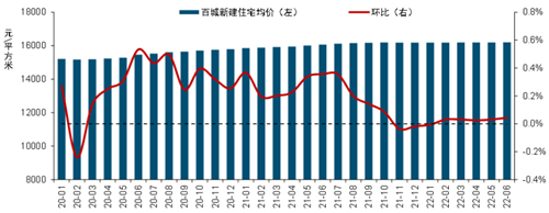 2020年1月至2022年6月百城新建住宅均價及環(huán)比變化,中指研究院制表