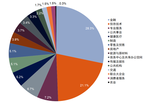 值得注意的是,上半年北京寫字樓市場租賃成交的行業(yè)分布格局有所調整。金融行業(yè)(28.3%)在上半年的成交占比領先于其他行業(yè),完成了全市約三成的租賃面積交易。信息技術行業(yè)在上半年的需求持續(xù)減弱,租賃面積成交占比(21.1%)僅位列第二。專業(yè)服務(7.2%)、公共事業(yè)(6.7%)及健康醫(yī)療(5.2%)等行業(yè)的租賃需求基本保持穩(wěn)定。