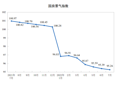 7月份,房地產開發(fā)景氣指數(簡稱“國房景氣指數”)為95.26。