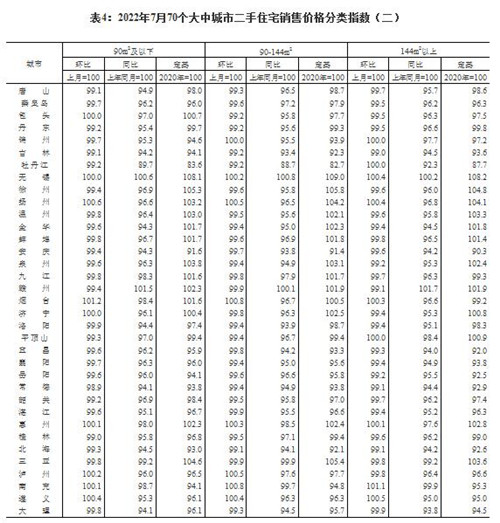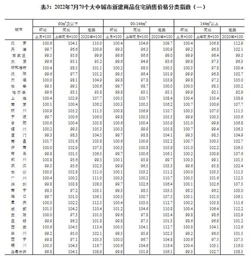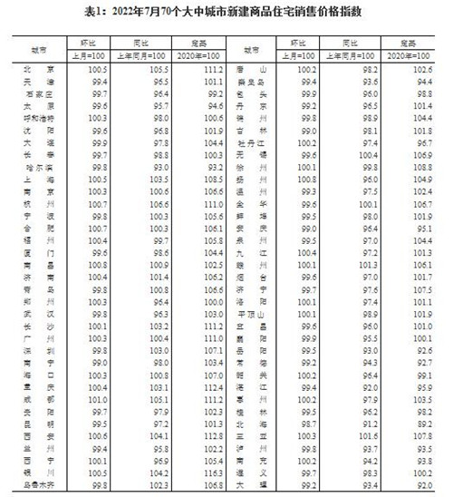 房訊網(wǎng)訊 8月15日,國(guó)家統(tǒng)計(jì)局發(fā)布2022年7月份70個(gè)大中城市商品住宅銷售價(jià)格變動(dòng)情況。國(guó)家統(tǒng)計(jì)局城市司首席統(tǒng)計(jì)師繩國(guó)慶解讀數(shù)據(jù)表示,7月份,70個(gè)大中城市中商品住宅銷售價(jià)格下降城市個(gè)數(shù)略增。