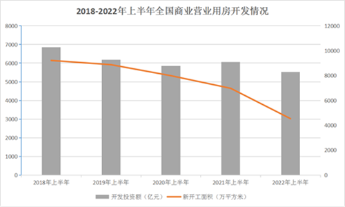 從商業(yè)營業(yè)用房來看,國家統(tǒng)計局?jǐn)?shù)據(jù)顯示,前6個月全國商業(yè)營業(yè)用房開發(fā)投資5528億元,同比下降8.7%;較受疫情影響的第一年即2020年同期也有下降,降幅為5.5%?梢钥闯觯词古懦咔橐蛩,房地產(chǎn)整體行業(yè)的下行依舊給商業(yè)地產(chǎn)帶來了一定的負(fù)面影響,這與企業(yè)融資端收緊、面臨較大的資金壓力有直接關(guān)系。