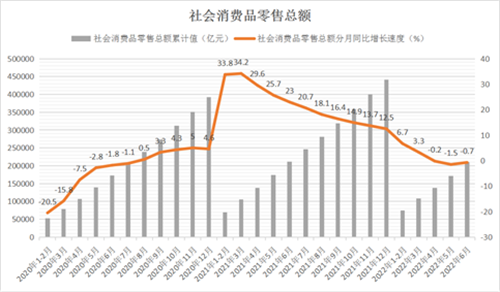 從市場消費(fèi)環(huán)境來看,上半年,中國消費(fèi)市場經(jīng)歷了開局平穩(wěn)、承壓下行和逐步回升三個階段,上半年整體社會消費(fèi)品零售總額達(dá)21萬億元,同比下降0.7%。尤其自3月份起受疫情多發(fā)頻發(fā)等因素影響,消費(fèi)市場受到較大沖擊,市場銷售同比下降。至6月份多數(shù)商品零售增速回升,餐飲消費(fèi)持續(xù)恢復(fù),部分地區(qū)市場銷售明顯改善,實體店鋪經(jīng)營向好,消費(fèi)市場積極恢復(fù)。