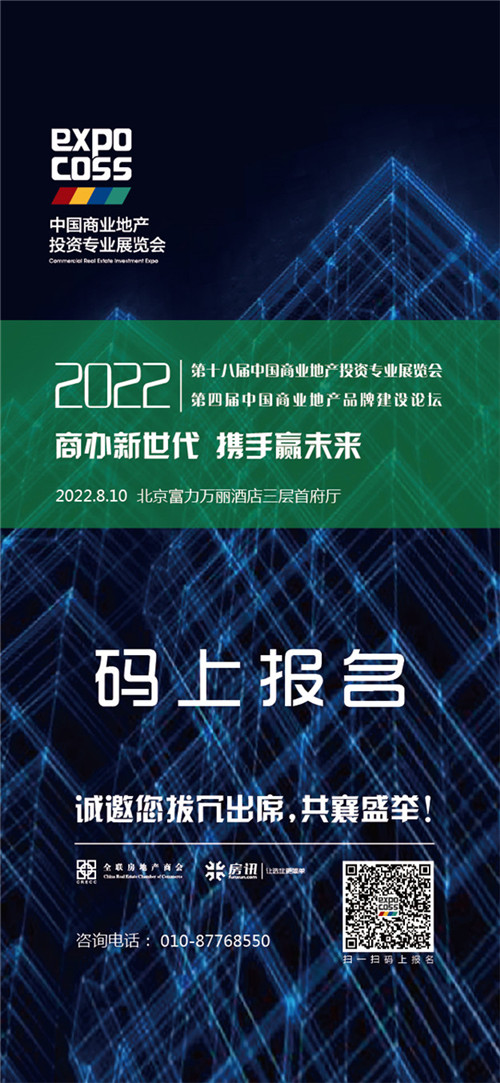 房訊網(wǎng)訊 8月10日,2022中國(guó)商業(yè)地產(chǎn)投資專業(yè)展覽會(huì)(EXPO COSS 2022)將在北京富力萬(wàn)麗酒店舉辦,主題為“商辦新世代 攜手贏未來(lái)”,致力打造領(lǐng)先的商業(yè)地產(chǎn)選址解決方案和商業(yè)地產(chǎn)投資專業(yè)展覽會(huì),探索新周期下商業(yè)地產(chǎn)行業(yè)新的發(fā)展模式,攜手多方力量共同推動(dòng)商業(yè)地產(chǎn)市場(chǎng)持續(xù)復(fù)蘇和健康發(fā)展。