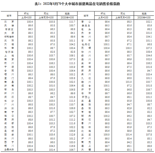 房訊網(wǎng)訊 國家統(tǒng)計局近日發(fā)布2022年8月份商品住宅銷售價格變動情況,統(tǒng)計數(shù)據(jù)顯示,8月商品住宅銷售價格下降城市個數(shù)有所增加。70個大中城市中,新建商品住宅和二手住宅銷售價格環(huán)比下降城市分別有50個和56個,比上月分別增加10個和5個。