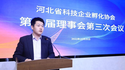 在2023河北省科技企業(yè)孵化協(xié)會年會上,石鐵鑄副處長為大會致辭,李靖秘書長和曾紅兵副秘書長分別發(fā)布了"河北省孵化載體發(fā)展報告"和"河北省雙創(chuàng)地圖"