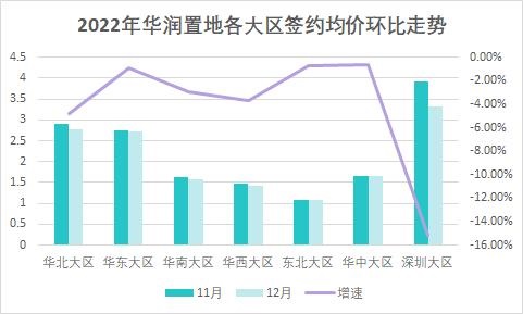 2022年底的搶收行為,使得華潤置地各大區(qū)簽約均價環(huán)比均有所下滑。