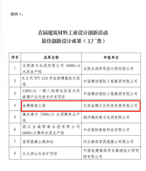 建筑材料行業(yè)大會是建材行業(yè)層次最高、影響最大的年度盛會,是了解國內(nèi)外建筑材料行業(yè)最新成果的權(quán)威窗口,也是了解行業(yè)發(fā)展趨勢的風(fēng)向標。大會上發(fā)布了首屆建筑材料行業(yè)工業(yè)設(shè)計創(chuàng)新活動優(yōu)秀成果,金隅文化科技發(fā)展有限公司申報的金隅智造工場從170項參賽項目中脫穎而出,榮獲“首屆建筑材料工業(yè)設(shè)計創(chuàng)新活動最佳創(chuàng)意設(shè)計成果”獎項。