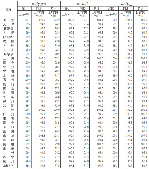 表1:2023年1月70個大中城市新建商品住宅銷售價格指數(shù)