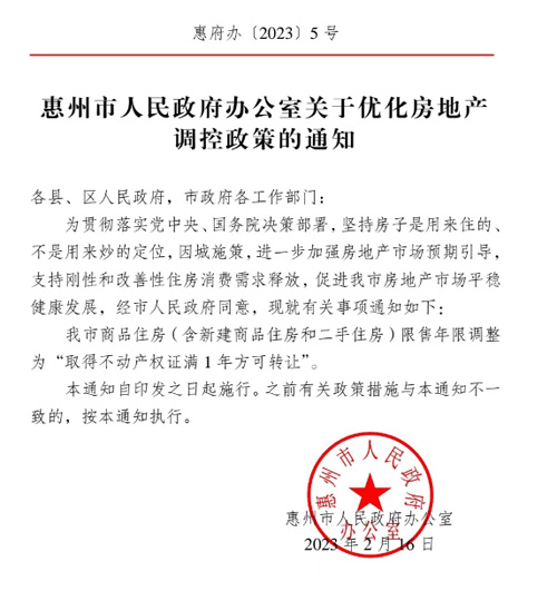 房訊網(wǎng)訊 剛剛,惠州市人民政府辦公室發(fā)布了關(guān)于優(yōu)化房地產(chǎn)調(diào)控政策的通知。
