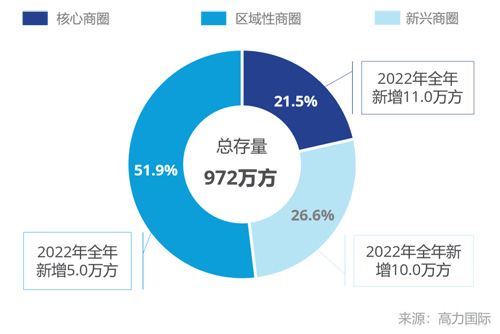 年底錄得的零售物業(yè)全市總存量972萬方中,區(qū)域性商圈占比超五成。