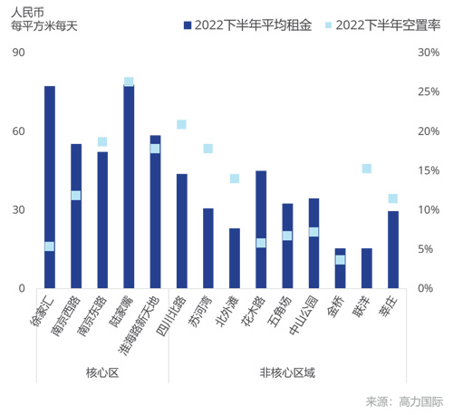 2022年下半年上海主要商圈租金及空置率表現(xiàn)