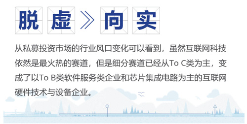 未來,中國意在打通這些產(chǎn)業(yè)發(fā)展的技術(shù)瓶頸,因此國產(chǎn)化替代是實現(xiàn)高質(zhì)量發(fā)展的必然選擇,也是提升中國在全球產(chǎn)業(yè)鏈競爭力的必由之路。以北京的私募投資市場為例,有超過70%的互聯(lián)網(wǎng)軟件與服務(wù)領(lǐng)域的投資集中在了To B類的企業(yè)服務(wù)領(lǐng)域,超過90%的互聯(lián)網(wǎng)硬件技術(shù)與設(shè)備的投資都集中在了芯片集成電路領(lǐng)域。