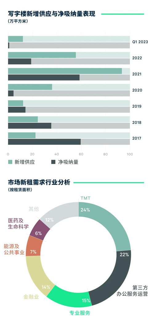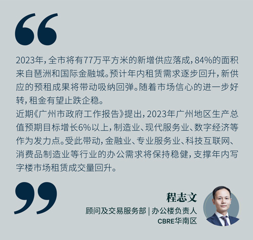 2023年開春,廣州全市經(jīng)濟活動趨向活躍,寫字樓市場租賃情緒回暖。1-2月全市規(guī)模以上服務(wù)業(yè)實現(xiàn)營業(yè)收入2,541.5億元,同比增長2.9%,開局平穩(wěn)。信息傳輸、軟件和信息技術(shù)服務(wù)業(yè)營業(yè)收入同比增長4.7%,增速比2022年全年提高1.1個百分點,拉動全市規(guī)模以上服務(wù)業(yè)增長1.3個百分點。