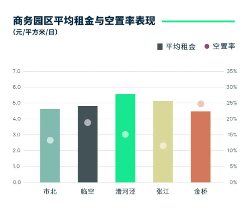 對比各子市場表現(xiàn),金橋深度圍繞5G+產(chǎn)業(yè)結(jié)構(gòu)升級,季度新設(shè)企業(yè)涵蓋未來車、智能造、大視訊、智慧醫(yī)療等重點行業(yè),推動空置率繼續(xù)下降1.6個百分點。張江特色生物醫(yī)藥園區(qū)稀缺性和價值性進一步體現(xiàn),部分園區(qū)面積緊缺,報價再破新高,推動張江板塊租金0.1%的小幅上漲。漕河涇板塊受新增供應(yīng)密集影響,原高出租率的優(yōu)質(zhì)項目內(nèi)企業(yè)到期退租,對外招租面積增加,因此租金水平也出現(xiàn)小幅松動,環(huán)比下落0.1%。市北臨空板塊表現(xiàn)穩(wěn)定,基本走出前期疫情影響陰霾,空置率穩(wěn)步回落。此外浦江、外高橋、康橋、松江各板塊同樣積極發(fā)掘優(yōu)勢產(chǎn)業(yè),引入優(yōu)質(zhì)產(chǎn)業(yè)租戶,季內(nèi)錄得一定成交。全市平均租金報價基本持平,報每月每平方米139.7元。