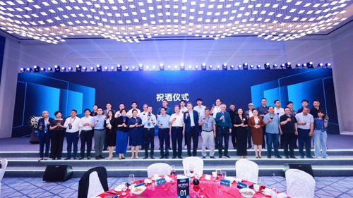 隨后,出席"兩會"的有關(guān)領(lǐng)導和主辦、獨家冠名、特別承辦、承辦、協(xié)辦、特別支持單位的負責人上臺,曾慶偉會長代表大家致辭并宣布晚宴開始。大家歡聚一堂,共敘友誼,暢想未來。