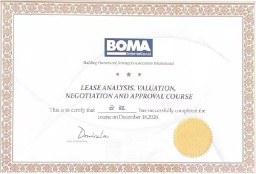 憑借過往的努力,云虹連續(xù)多年獲得商辦地產(chǎn)優(yōu)秀經(jīng)理人以及商業(yè)辦公評價標(biāo)準(zhǔn)特約研究員、2022年商業(yè)辦公新勢力人物等個人獎項,取得BOMA中國LEASE ANALYSIS, VALUATION ,NEGOTIATION AND APPROVAL COURSE等證書的同時持續(xù)擔(dān)任全聯(lián)房地產(chǎn)商會寫字樓分會副會長。
