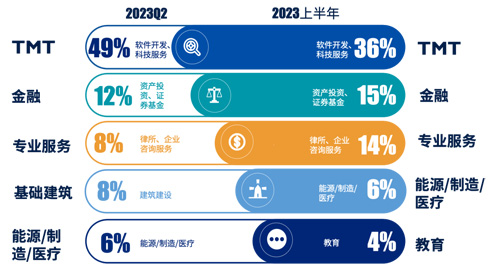 2023年上半年的搬遷交易僅為去年同期的27%,第二季度的搬遷行為只有第一季度的60.7%,企業(yè)變得更加謹(jǐn)慎務(wù)實(shí)和觀望態(tài)度,整體市場(chǎng)呈現(xiàn)疲軟狀態(tài),上半年總體甲級(jí)辦公樓市場(chǎng)凈吸納為負(fù)100,795平方米,在上半年新供應(yīng)稀缺的情況下,空置率繼續(xù)攀升至16.5%,二季度部分業(yè)主開(kāi)始積極調(diào)整租金策略,甲級(jí)整體市場(chǎng)凈有效租金較第一季度下降至322.3元/月/平方米,租賃交易面積比例排行依次為:TMT依舊占有重要比重、金融與專業(yè)服務(wù)列在第二和第三位,基礎(chǔ)建設(shè)占據(jù)了第四位。