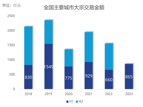2023年上半年中國主要城市*合計(jì)錄得92筆大宗成交,總交易金額近865億元,為去年同期成交量的131%。