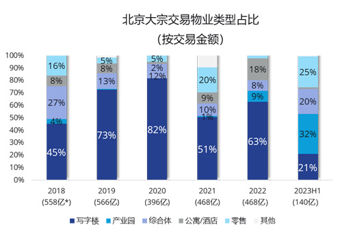 按北京上半年物業(yè)類型交易金額占比