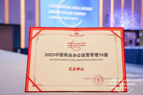 2023年6月27日,在北京正大中心盛勢(shì)舉辦的第五屆中國(guó)商業(yè)地產(chǎn)品牌價(jià)值論壇上,憑借優(yōu)秀的品牌運(yùn)營(yíng)能力,正大中心榮獲本屆論壇頒發(fā)的“2023中國(guó)商業(yè)辦公運(yùn)營(yíng)管理10強(qiáng)”。