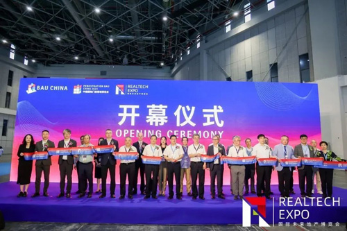 在8月3日BAU CHINA及RealTech開幕式上,全聯(lián)房地產(chǎn)商會(huì)會(huì)長(zhǎng)、大漢控股集團(tuán)有限公司董事長(zhǎng)付勝龍,全聯(lián)房地產(chǎn)商會(huì)常務(wù)會(huì)長(zhǎng)、北京天鴻控股(集團(tuán))有限公司董事長(zhǎng)柴志坤,全聯(lián)房地產(chǎn)商會(huì)黨委常務(wù)副書記、秘書長(zhǎng)趙正挺,全聯(lián)房地產(chǎn)商會(huì)副會(huì)長(zhǎng)、精瑞不動(dòng)產(chǎn)研究院院長(zhǎng)張雪舟,新城控股集團(tuán)副總裁管有冬,遠(yuǎn)大住宅工業(yè)集團(tuán)股份有限公司董事、副董事長(zhǎng)唐芬,廣聯(lián)達(dá)科技股份有限公司副總裁郭建峰,北新建材黨委副書記、總經(jīng)理管理,全聯(lián)房地產(chǎn)商會(huì)企業(yè)研究分會(huì)執(zhí)行會(huì)長(zhǎng)陳嘯天,慕尼黑展覽(上海)有限公司中國(guó)區(qū)總裁沙怡文等主辦單位及代表企業(yè)領(lǐng)導(dǎo)上臺(tái)剪彩并合影。