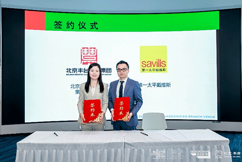 第一太平戴維斯策略顧問部主管、高級董事朱峰,豐臺文化旅游集團有限公司副總經(jīng)理韓蘭佳女士上臺簽約。