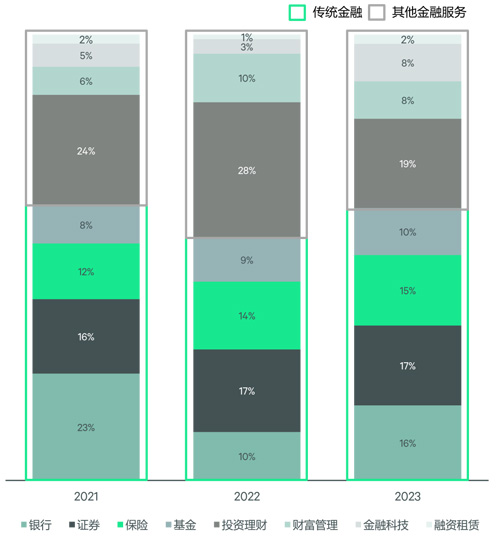 傳統(tǒng)金融服務(wù)與其他金融服務(wù)需求占比約6:4,所以傳統(tǒng)金融的表現(xiàn)略勝一籌。