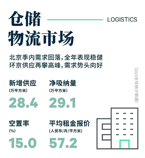 2023年第四季度,北京順義竣工一座倉(cāng)儲(chǔ)物流項(xiàng)目,帶來(lái)12.2萬(wàn)平方米的新增供應(yīng)。至此全年新增供應(yīng)28.4萬(wàn)平方米,盡管較2022年減少,但顯著高于過(guò)去十年的平均水平。季內(nèi)凈吸納量5.2萬(wàn)平方米,綜合性第三方物流新租表現(xiàn)亮眼,占據(jù)總成交面積的56%;其次半導(dǎo)體、汽配、醫(yī)藥等制造業(yè)亦貢獻(xiàn)24%的新租,具有大面積可選空間的平谷及大興空港表現(xiàn)活躍。全年全市凈吸納量錄得29.1萬(wàn)平方米,第三方物流需求占據(jù)全年主力,新租面積較去年提升16%,而由于疫情后消費(fèi)部分回歸線下,電商新租面積同比縮減達(dá)25%。