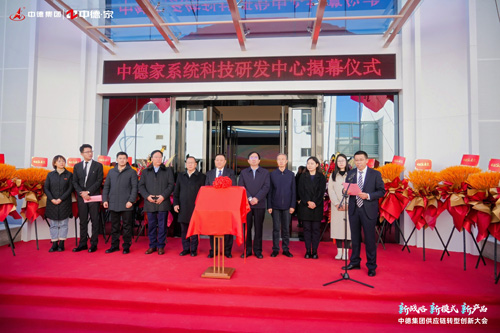 上午,中德家系統(tǒng)科技研發(fā)中心舉行揭幕儀式。全聯(lián)房地產(chǎn)商會常務(wù)副監(jiān)事長、中國建筑節(jié)能協(xié)會副會長孟繁軍和中德集團(tuán)董事長程田青共同為研發(fā)中心揭幕。揭幕儀式由中德集團(tuán)執(zhí)行總裁張軍主持。