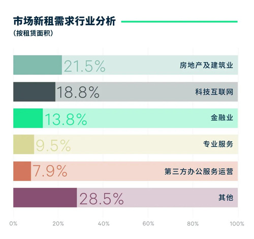 此外,近年經(jīng)濟不確定性和監(jiān)管環(huán)境的快速變化促使咨詢、合規(guī)、商業(yè)訴訟等專業(yè)服務(wù)需求不斷增長,而生物醫(yī)藥、裝備制造、電子信息制造、新能源等作為西安新興支柱產(chǎn)業(yè),其發(fā)展前景也推動了該類行業(yè)的寫字樓需求擴張。年內(nèi),如生物醫(yī)藥、工業(yè)制造、能源及公共事業(yè)等行業(yè)的租賃需求皆出現(xiàn)較大幅度的增長。