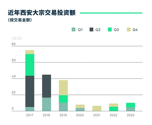 2023年,西安大宗交易市場(chǎng)共錄得9筆成交,已知交易額達(dá)10.5億元,同比上升20.7%。