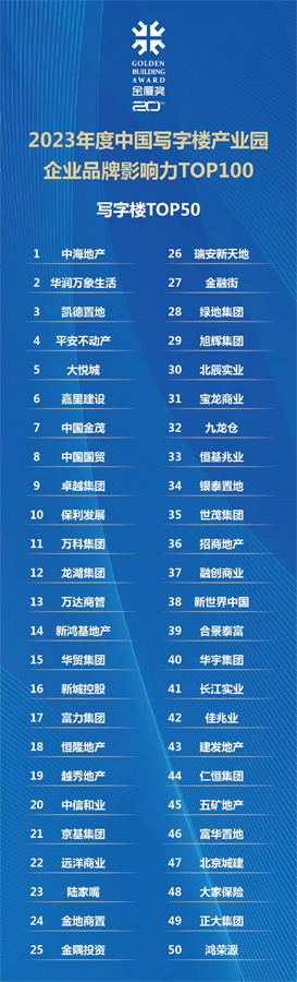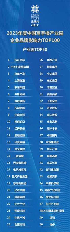 2023年中國寫字樓產(chǎn)業(yè)園品牌影響100強測評榜單