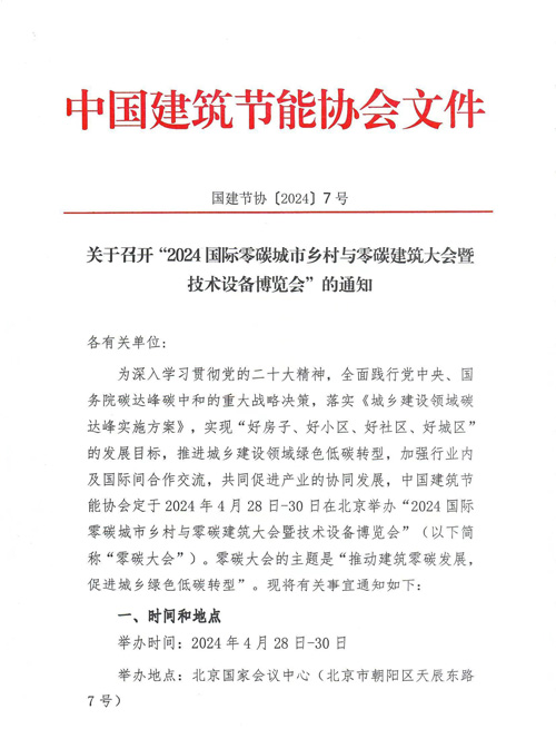 關(guān)于召開“2024國際零碳城市鄉(xiāng)村與零碳建筑大會暨技術(shù)設(shè)備博覽會”的通知