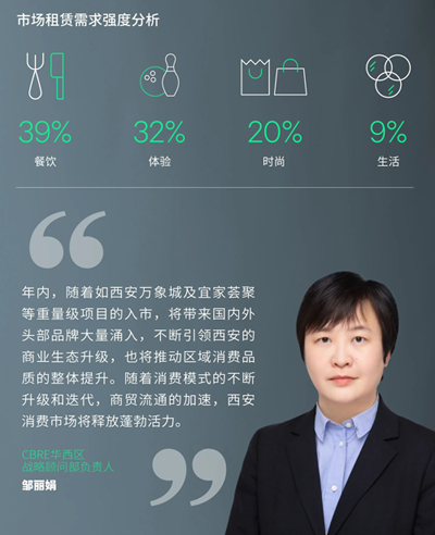 未來(lái)三季度,西安將迎來(lái)近44.4萬(wàn)方的新增供應(yīng),其中不乏如西安萬(wàn)象城及宜家薈聚等重量級(jí)項(xiàng)目的入市。同時(shí),西安零售市場(chǎng)將在年內(nèi)度迎來(lái)更多形態(tài)獨(dú)特的零售項(xiàng)目,如文旅體融合項(xiàng)目體育之窗NMC中心及主打“體育?商業(yè)”的星璇廣場(chǎng)等優(yōu)質(zhì)項(xiàng)目的入市進(jìn)一步推動(dòng)創(chuàng)新業(yè)態(tài)和場(chǎng)景的發(fā)展支撐消費(fèi)市場(chǎng)加速回暖,西安零售物業(yè)市場(chǎng)有望迎來(lái)新的發(fā)展機(jī)遇。