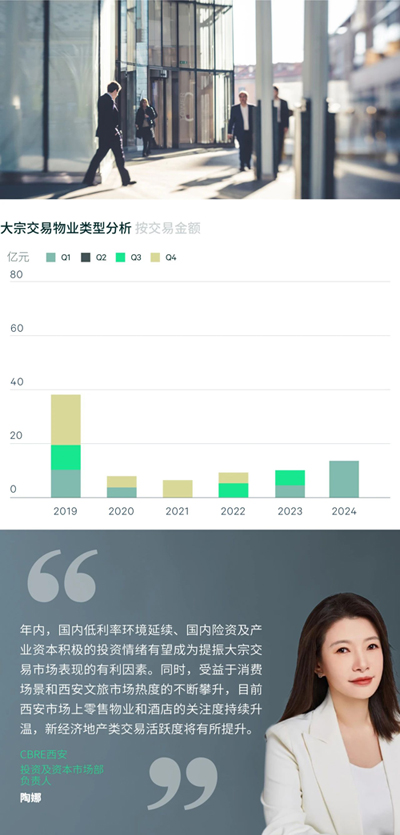 2024年第一季度,西安大宗交易市場(chǎng)共錄得3筆大宗成交,已知交易額達(dá)13.6億元。成交交易標(biāo)的為一宗酒店、一宗商業(yè)樓宇及一宗物流園項(xiàng)目,均為資產(chǎn)交易,市場(chǎng)交易標(biāo)的資產(chǎn)類型更趨多元。買家類型方面,本土化特征明顯,包括私人投資者、企業(yè)和本地國(guó)資企業(yè)。此外,區(qū)政府的城建公司及城更基金等國(guó)資背景機(jī)構(gòu)也開(kāi)始下場(chǎng)物色優(yōu)質(zhì)資產(chǎn)。增值型投資機(jī)會(huì)將愈發(fā)受到關(guān)注。