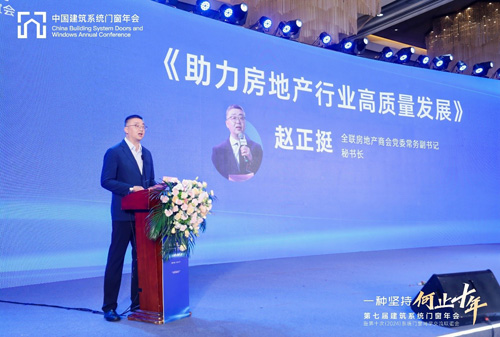接著,全聯(lián)房地產(chǎn)商會黨委常務(wù)副書記、秘書長趙正挺上臺致辭,做了《穿越周期;洞見未來-助力房地產(chǎn)行業(yè)高質(zhì)量發(fā)展》精彩演講,趙秘書長在演講中指出:我國城鎮(zhèn)化和基礎(chǔ)設(shè)施建設(shè)已初步完成,未來新建建筑的增長空間十分有限,房屋開發(fā)建設(shè)將以老舊建筑拆除重建為主,以供給結(jié)構(gòu)優(yōu)化的增量開發(fā)為輔,高質(zhì)量發(fā)展將成為房地產(chǎn)行業(yè)的主旋律。高質(zhì)量發(fā)展的內(nèi)在要求不僅是產(chǎn)品質(zhì)量和服務(wù)質(zhì)量的提高,還包括市場環(huán)境、機(jī)制等方面的優(yōu)化。對于我們系統(tǒng)門窗行業(yè)而言,需要站在房地產(chǎn)發(fā)展新的歷史起點(diǎn)上,面對挑戰(zhàn),抓好機(jī)遇,在原有2B市場的基礎(chǔ)上,面向城市更新大力拓展2C市場,以綠色發(fā)展引領(lǐng)和優(yōu)化市場環(huán)境。