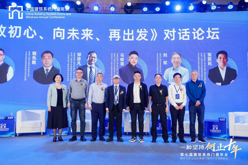 最后,全聯(lián)房地產(chǎn)商會節(jié)能門窗分會常務(wù)會長、廣東堅朗五金制品股份有限公司董事、副總裁白寶萍主持《致初心、向未來、再出發(fā)》的對話,對話嘉賓有:全聯(lián)房地產(chǎn)商會節(jié)能門窗分會名譽(yù)會長、北京米蘭之窗節(jié)能建材有限公司董事長馬俊清,系統(tǒng)門窗專家委員會主任、沈陽樂道建筑科技有限公司總經(jīng)理胡寶升,全聯(lián)房地產(chǎn)商會節(jié)能門窗分會和系統(tǒng)門窗同學(xué)交流聯(lián)誼會常務(wù)會長、廣州集泰化工股份有限公司總經(jīng)理鄒珍凡,系統(tǒng)門窗專家委員會執(zhí)行主任、泰諾風(fēng)保泰(蘇州)隔熱材料有限公司總工程師劉軍,系統(tǒng)門窗專家委員會執(zhí)行主任兼秘書長王盛坤,系統(tǒng)門窗專家委員會常務(wù)主任、大連實(shí)德科技發(fā)展有限公司總經(jīng)理程先勝,全聯(lián)房地產(chǎn)商會節(jié)能門窗分會和系統(tǒng)門窗同學(xué)交流聯(lián)誼會副會長、山東雷德數(shù)控機(jī)械股份有限公司董事長張愛民。