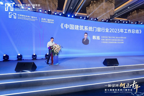 接著,全聯(lián)房地產(chǎn)商會節(jié)能門窗分會常務(wù)會長、大洋家居江蘇股份有限公司總經(jīng)理韓旭做《中國建筑系統(tǒng)門窗行業(yè)2023年工作總結(jié)》。