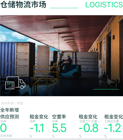 2024年第一季度租賃勢(shì)頭依然疲軟。倉庫空置率上升0.16個(gè)百分點(diǎn)至5.5%,并隨著租戶縮小現(xiàn)有規(guī)模,預(yù)計(jì)空置率將進(jìn)一步上升。