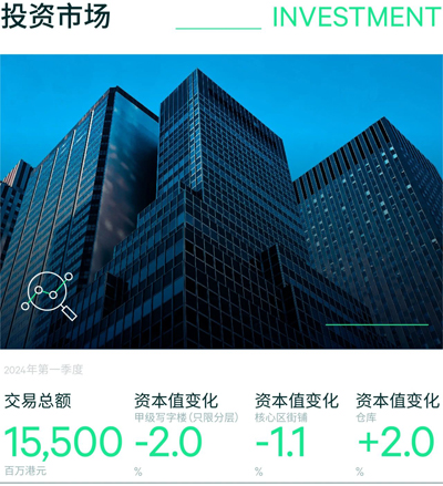 2024年第一季度商業(yè)地產(chǎn)投資額(只計(jì)算交易額超過7,700萬港元,不包括凈地或關(guān)聯(lián)交易)按季上升8.5%,總計(jì)155億港元。