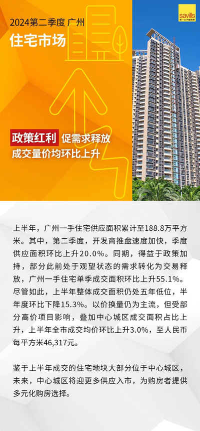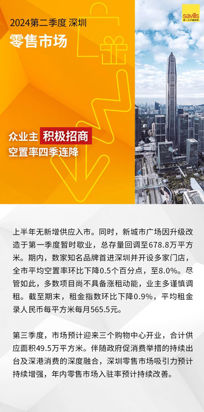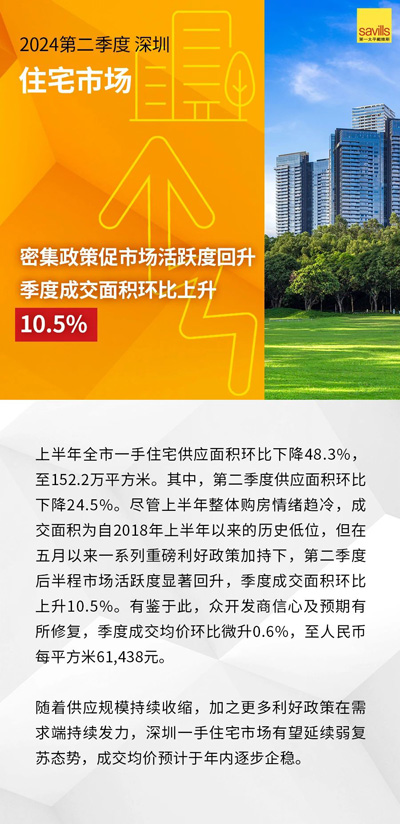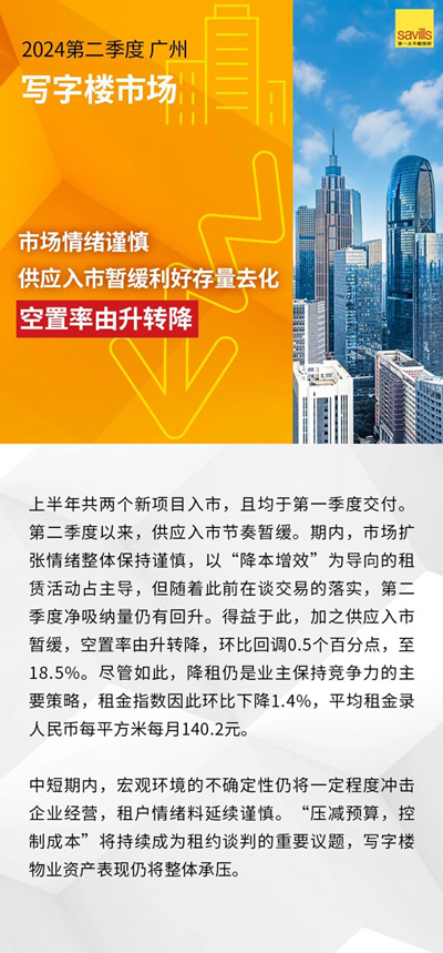 第一太平戴維斯(Savills)發(fā)布2024第二季度廣州、深圳房地產(chǎn)市場回顧及展望。上半年,在宏觀層面壓力與風險猶存的背景下,廣深房地產(chǎn)市場仍釋出改善信號。寫字樓業(yè)主積極的租賃策略激發(fā)市場活躍度提升,在供應暫緩背景下,兩城空置率均環(huán)比回落。零售市場方面,消費市場的穩(wěn)定增長賦能零售物業(yè)市場空置率維穩(wěn)。住宅市場迎利好政策密集釋放,成交量價觸底回升。