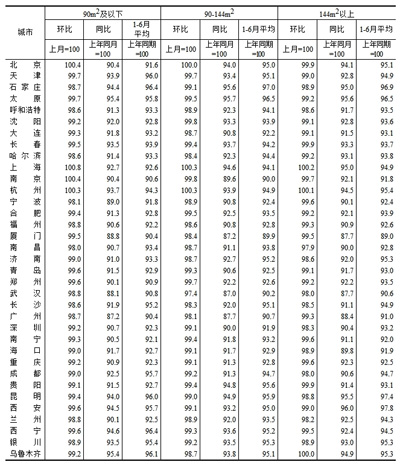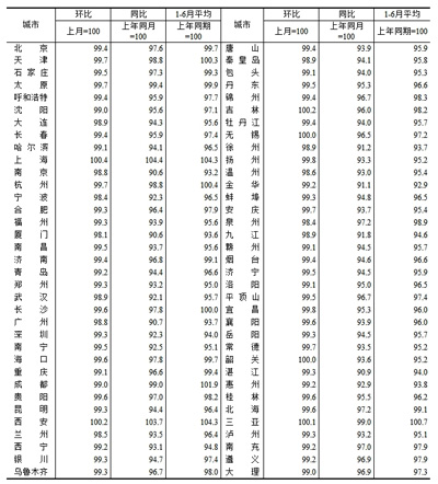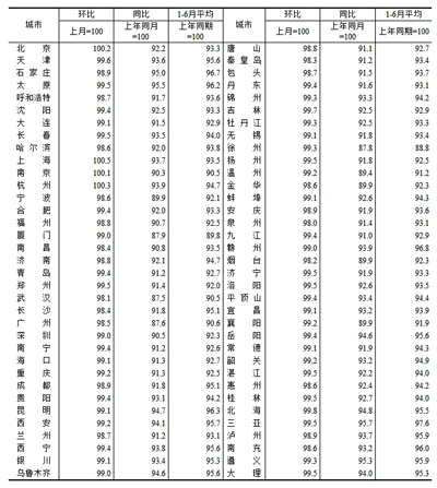 表1:2024年6月70個(gè)大中城市新建商品住宅銷售價(jià)格指數(shù)