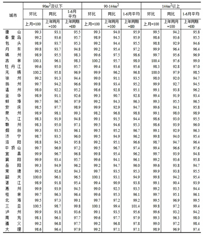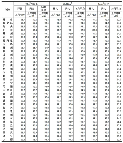 表3:2024年6月70個(gè)大中城市新建商品住宅銷售價(jià)格分類指數(shù)(二)